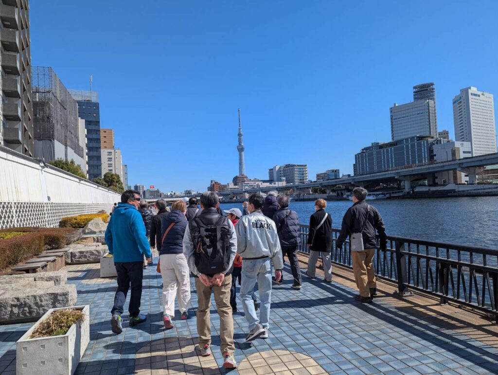 両国橋、柳橋、蔵前、鳥越神社、吾妻橋といった名所を巡りながら、それぞれの場所にまつわる逸話にも耳を傾け、和やかな雰囲気で歩みを進めました。